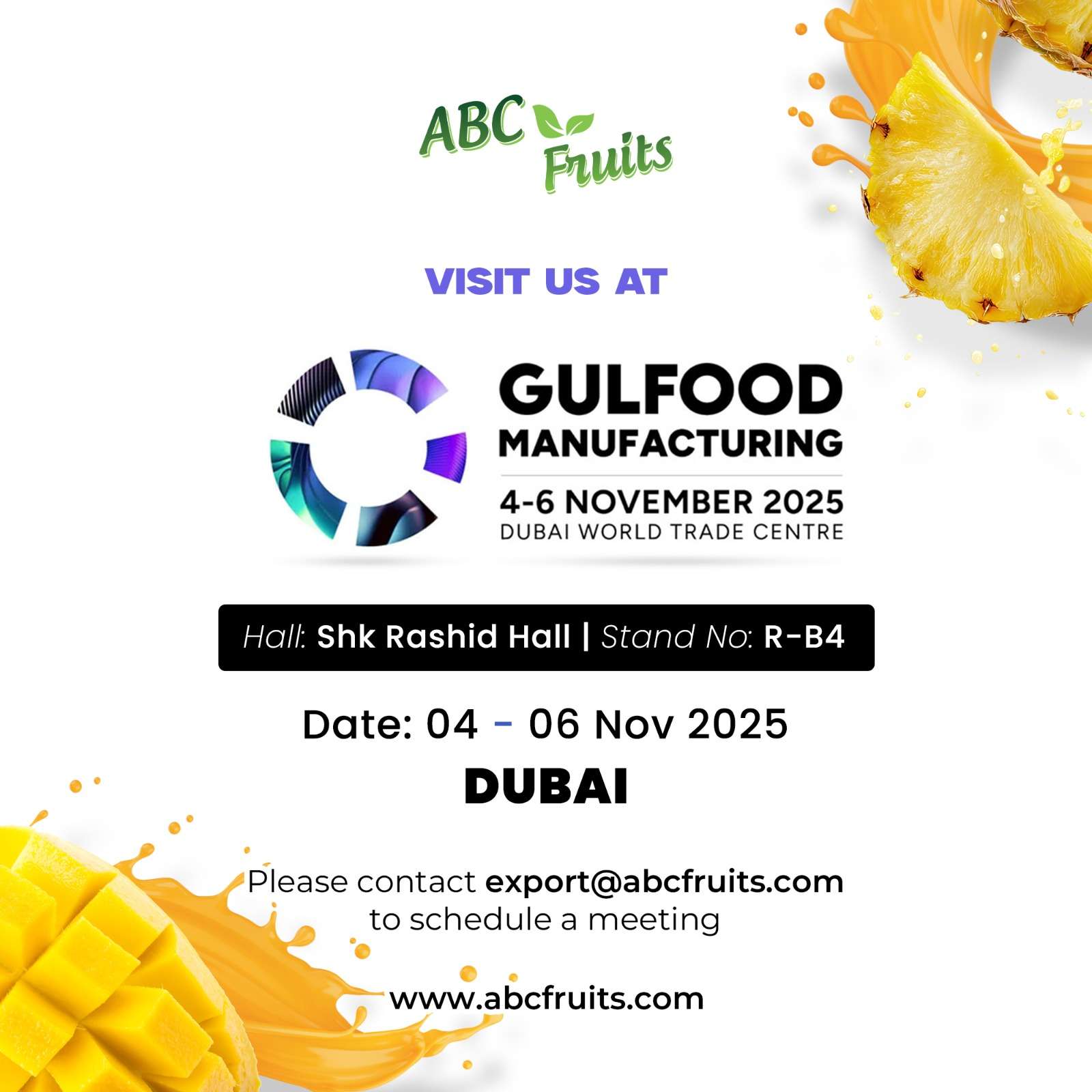 Dubai World Trade Centre Sheikh Zayed Rd - Trade Center Second - Trade Centre 2 - Dubai - United Arab Emirates, Dubai, UAEABC Fruits at Gulfood Manufacturing 2025 – Dubai, UAE We are delighted to announce that ABC Fruits will be exhibiting at Gulfood Manufacturing 2025, scheduled from November 4th – 6th, 2025, at the Dubai World Trade Centre, UAE. Gulfood Manufacturing is one of the region’s premier events for food and beverage innovation, uniting manufacturers, suppliers, […]